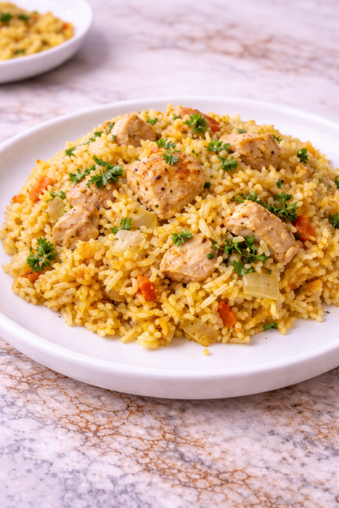 With tender chicken, creamy rice, nutritious vegetables, and melted cheese, it’s a complete, comforting meal.