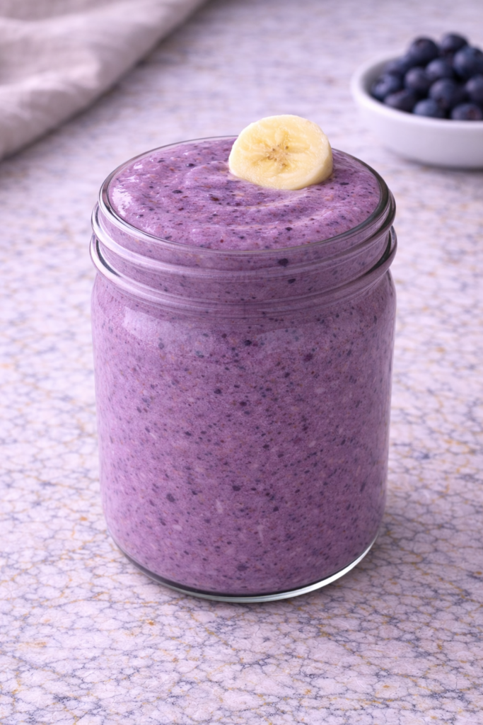 I’m talking thick, creamy, naturally sweet perfection that you can literally drink while running for the bus. ]The banana gives you that smooth, almost ice-cream-like texture, while the blueberries pack in antioxidants without making you feel like you’re choking down a health lecture.