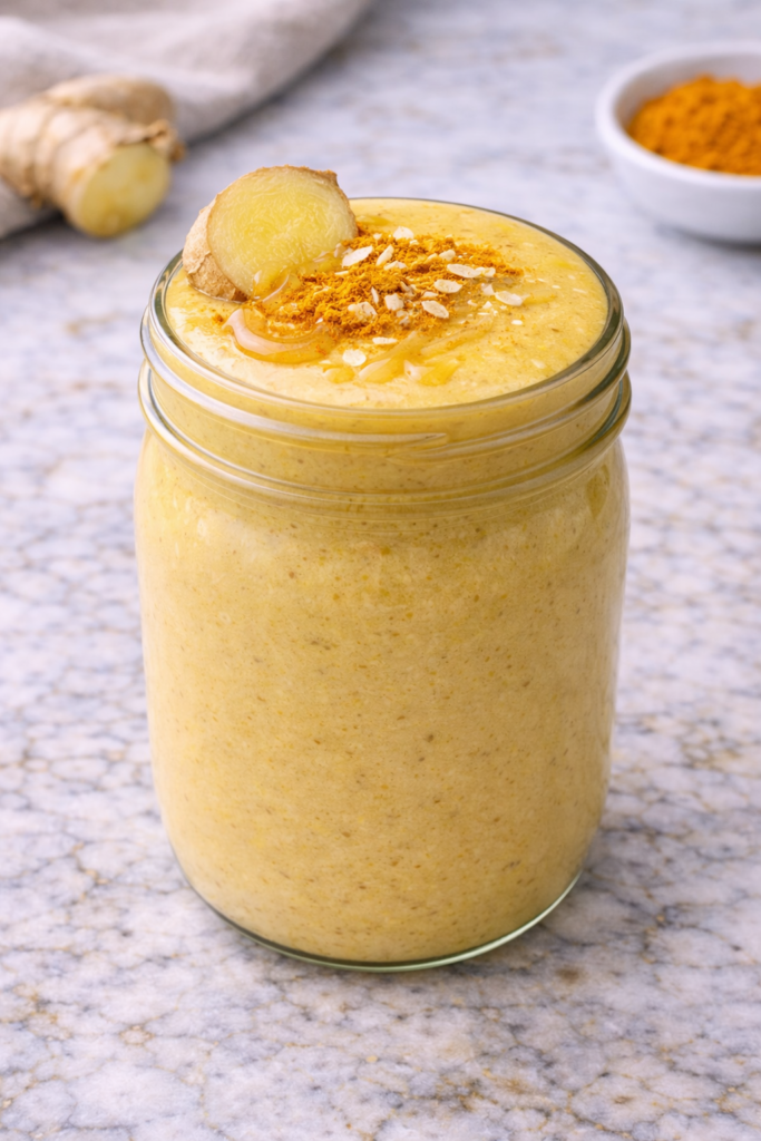 But here’s the thing: this one actually tastes good. The banana does all the heavy lifting, making it creamy and naturally sweet, while the ginger and turmeric sneak in underneath without slapping you in the face.
