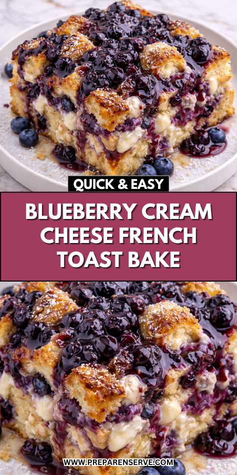Blueberry cream cheese French toast bake is perfect for preparing in advance, making your mornings much easier and more relaxed. After assembling the dish, cover it tightly with plastic wrap or foil and refrigerate overnight. This allows the bread to fully absorb the custard and helps the flavors come together beautifully.