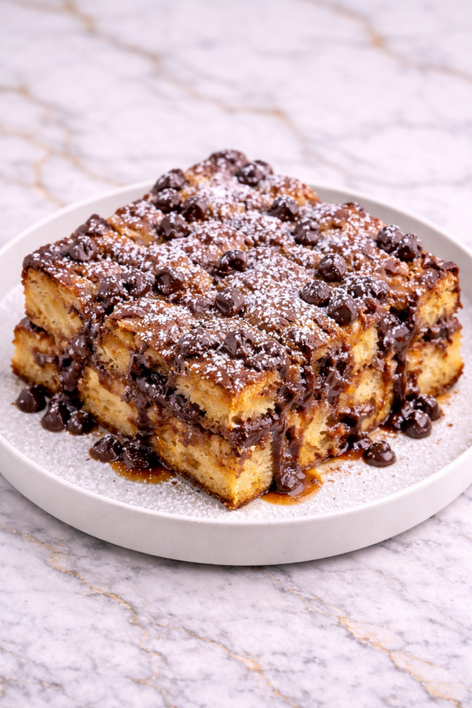 As it baked, the chocolate chips melted into the soft, custardy bread, creating pockets of gooey sweetness in every bite. It quickly became a favorite, especially for special mornings or when we just want something a little more fun. It’s the kind of dish that brings everyone to the table before you even call them.