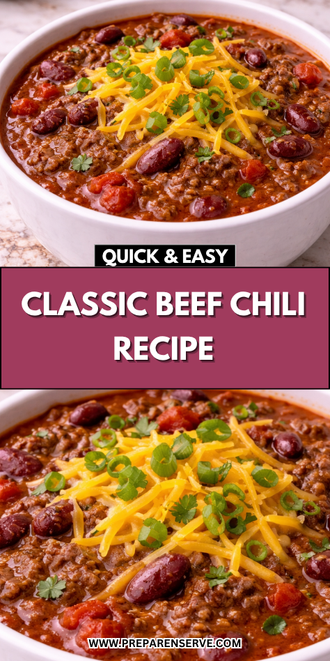 Classic beef chili is the ultimate comfort food—hearty, rich, and full of bold flavors. With tender ground beef, savory spices, and a medley of beans and tomatoes, this dish warms the soul and satisfies even the hungriest appetites. In my home, a big pot of chili is a go-to for weeknight dinners, game days, or family gatherings because it’s simple to make yet packed with flavor.