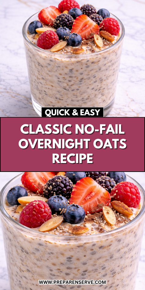 Classic no-fail overnight oats are designed for convenience, making them one of the easiest breakfasts to prepare in advance. You can mix everything together the night before and store it in the refrigerator, allowing the oats and chia seeds to absorb the liquid fully. By morning, the texture will be perfectly soft and creamy.