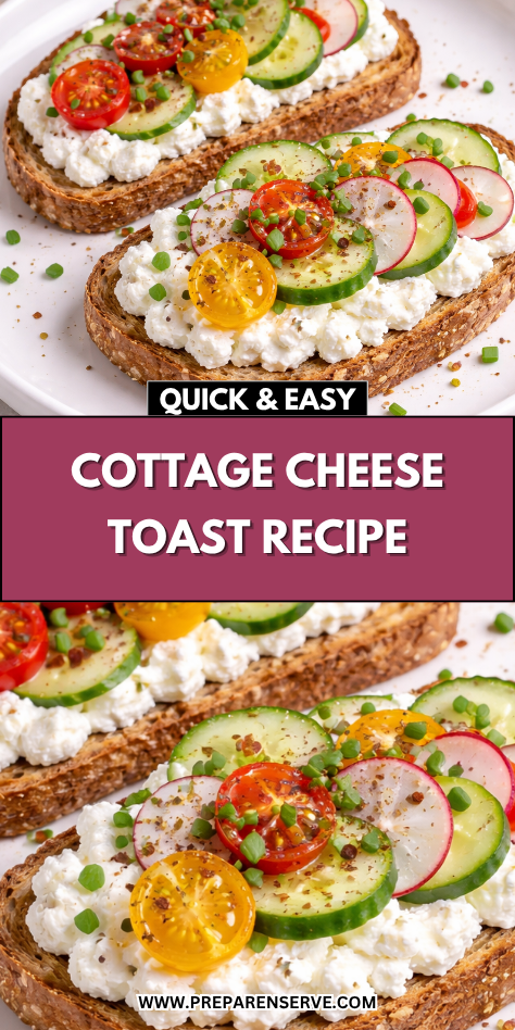 Serve the cottage cheese toast immediately for the best texture. Pair with fresh fruit, a smoothie, or a side of eggs for a complete breakfast or snack.