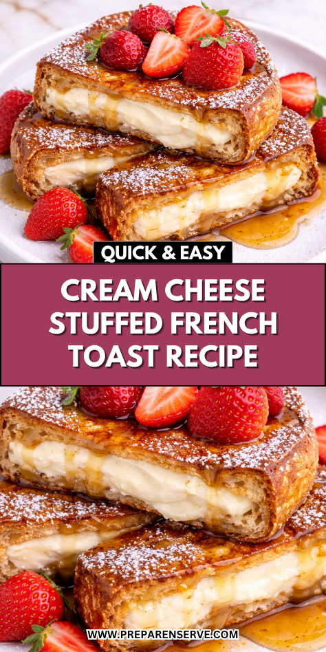 Cream cheese stuffed French toast is a great option for planning ahead, especially when you want a relaxed morning. You can prepare the cream cheese filling and custard mixture the night before and store them separately in the refrigerator. This cuts down on prep time and makes the cooking process much smoother.