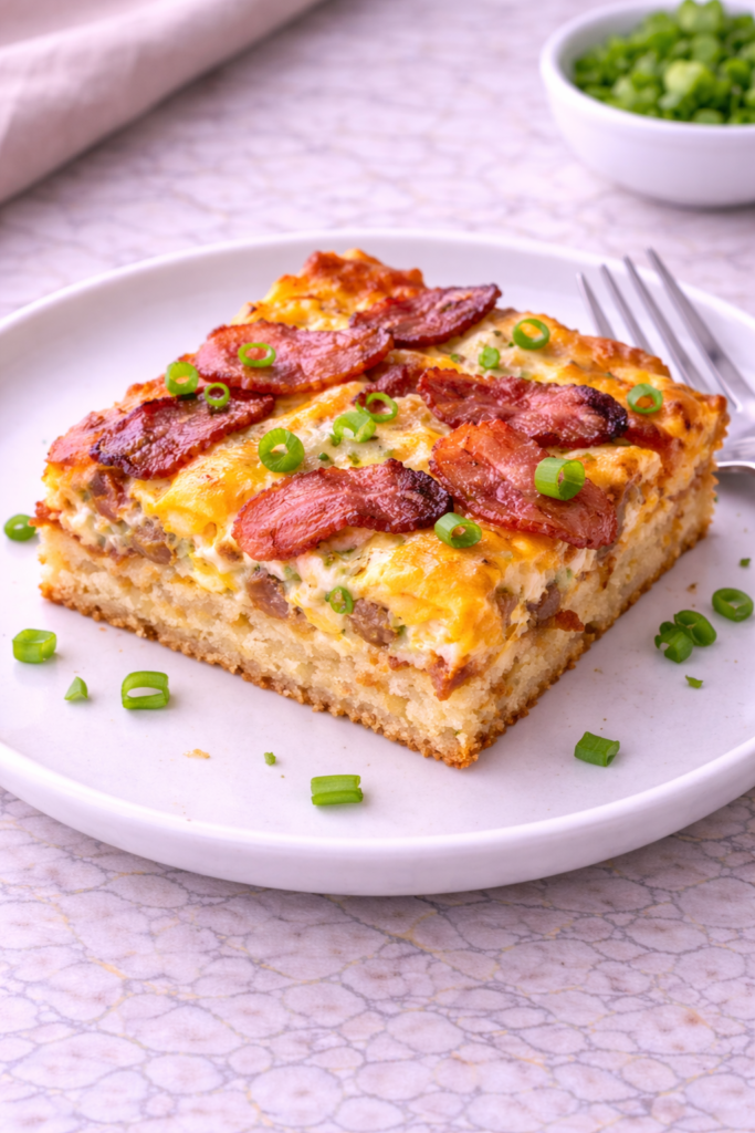 I recommend using a 9×13-inch baking dish for this recipe. It’s the perfect size to hold all the layers—hash browns, bacon, and cheese—while allowing the egg mixture to distribute evenly and bake through properly.