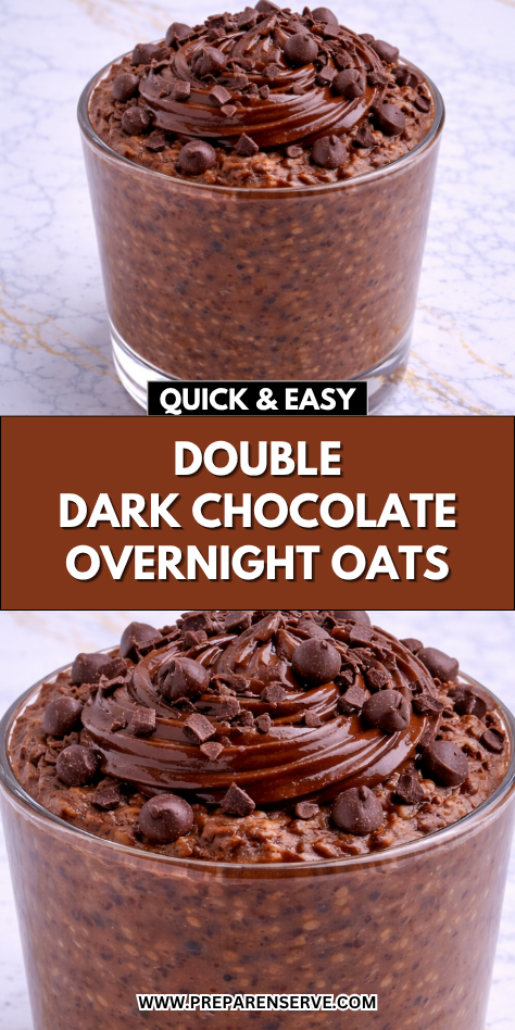Double dark chocolate overnight oats are perfect for preparing ahead, making them an ideal solution for busy mornings or weekly meal prep. Once mixed, the oats should be stored in the refrigerator overnight, allowing the cocoa powder to fully blend into the base and the chia seeds to thicken the mixture. This resting time is what transforms the ingredients into a rich, creamy, dessert-like breakfast.