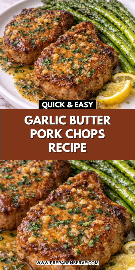 If desired, you can prepare the garlic butter sauce ahead of time. Melt butter, add minced garlic and herbs, and store in a covered container in the refrigerator for up to one day. When ready to cook, simply reheat the sauce in the skillet and finish cooking the pork chops.