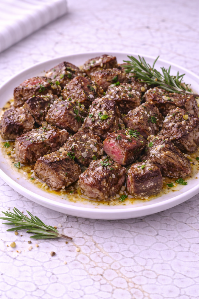 These steak bites are tender, juicy, and full of rich flavor. The garlic butter coats each piece of steak, creating a savory finish that feels satisfying with every bite. The flavor is bold but familiar.