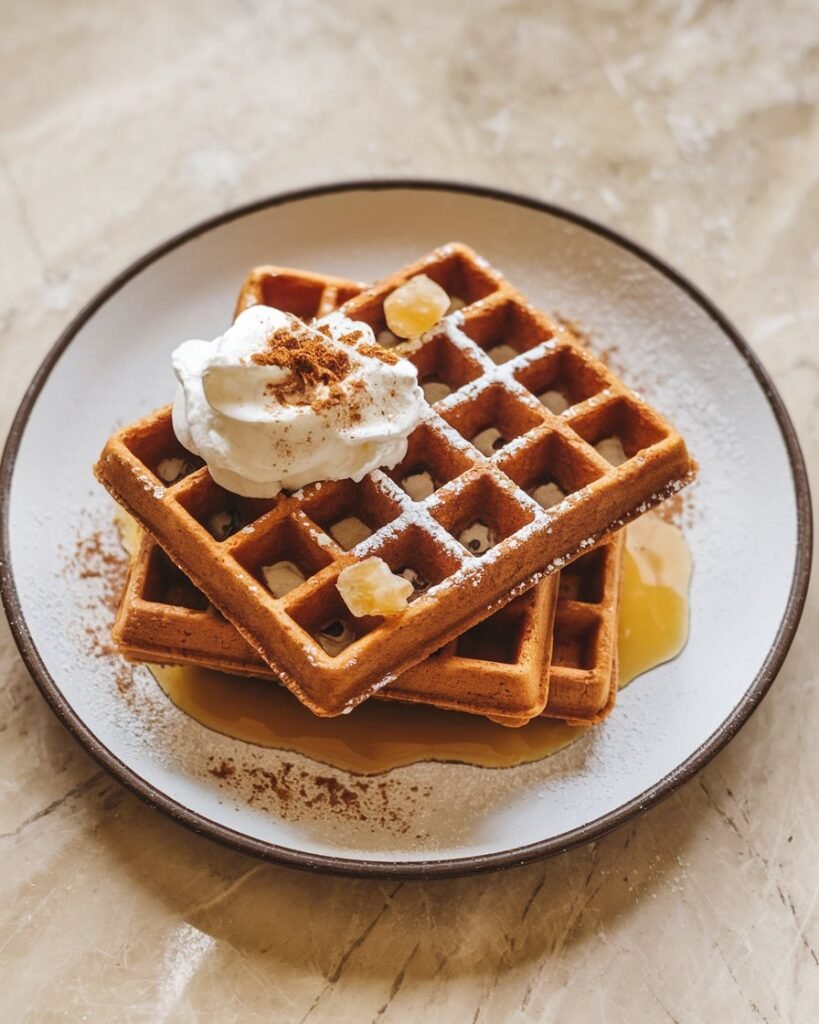 I first started making these waffles one December when I wanted to surprise my family with a festive breakfast. The scent of ginger, cloves, and vanilla filled the kitchen, and everyone came running before I even called them to the table. Since then, these waffles have become a cherished holiday tradition—one that brings warmth, nostalgia, and a little sweetness to cold winter mornings.