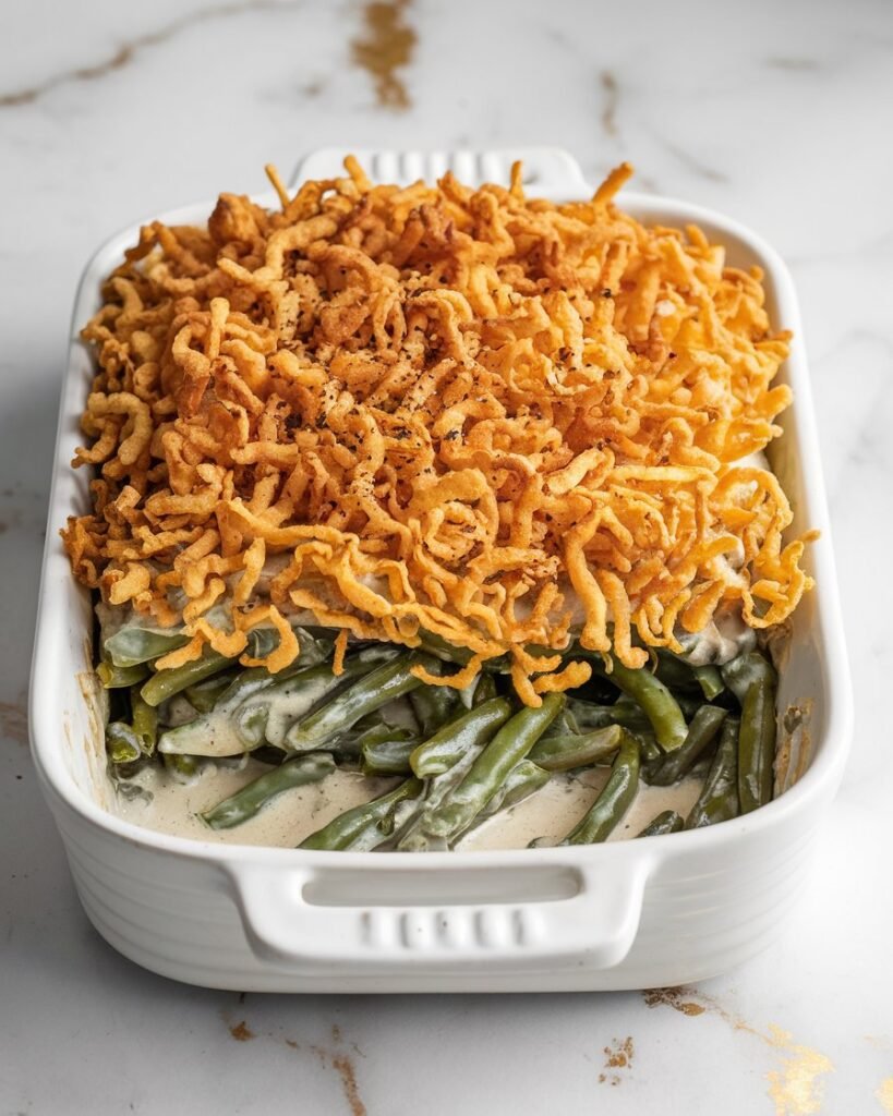 I can’t help but smile whenever green bean casserole makes its way to my table. There’s something magical about that creamy, savory blend topped with those crispy onions that takes me right back to childhood holidays.