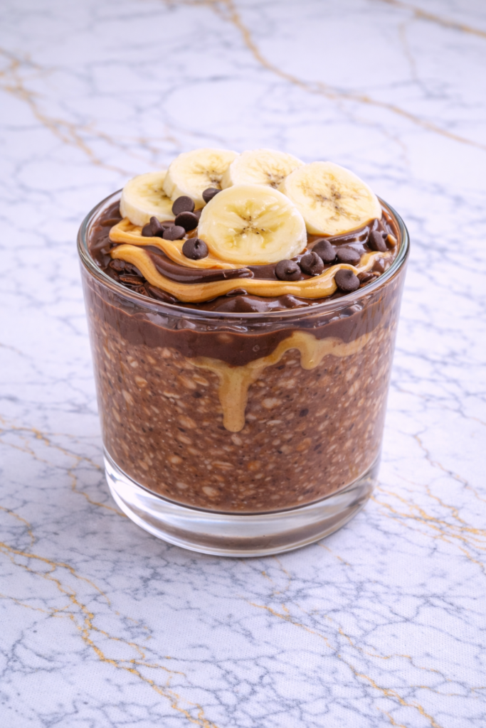 Serve chilled straight from the refrigerator or let sit for a few minutes at room temperature if preferred. Enjoy a creamy, chocolate-inspired breakfast.