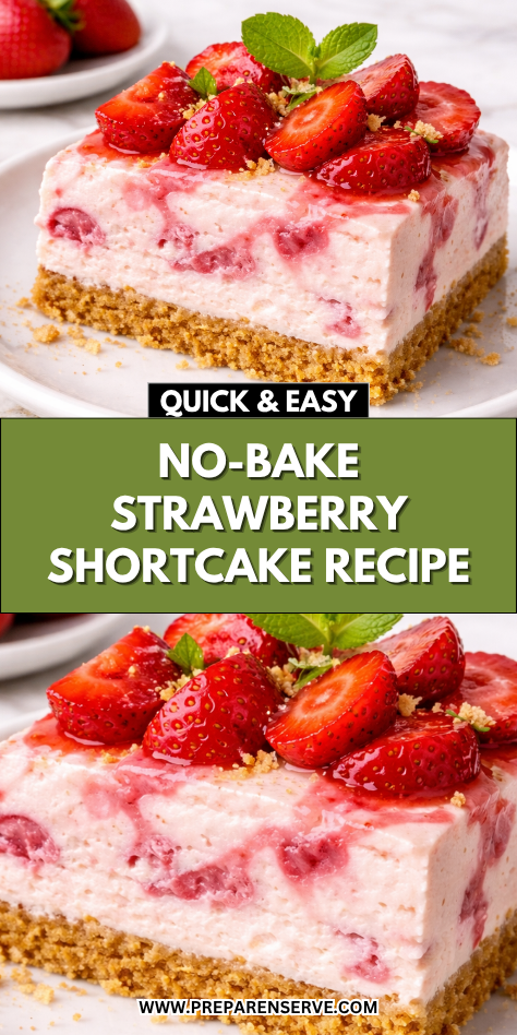 This No-Bake Strawberry Shortcake Recipe is light, creamy, and full of fresh strawberry flavor. The soft cake or biscuit layers soak up the sweet berry juices while the cream adds a smooth, rich contrast. Every spoonful feels balanced and refreshing.