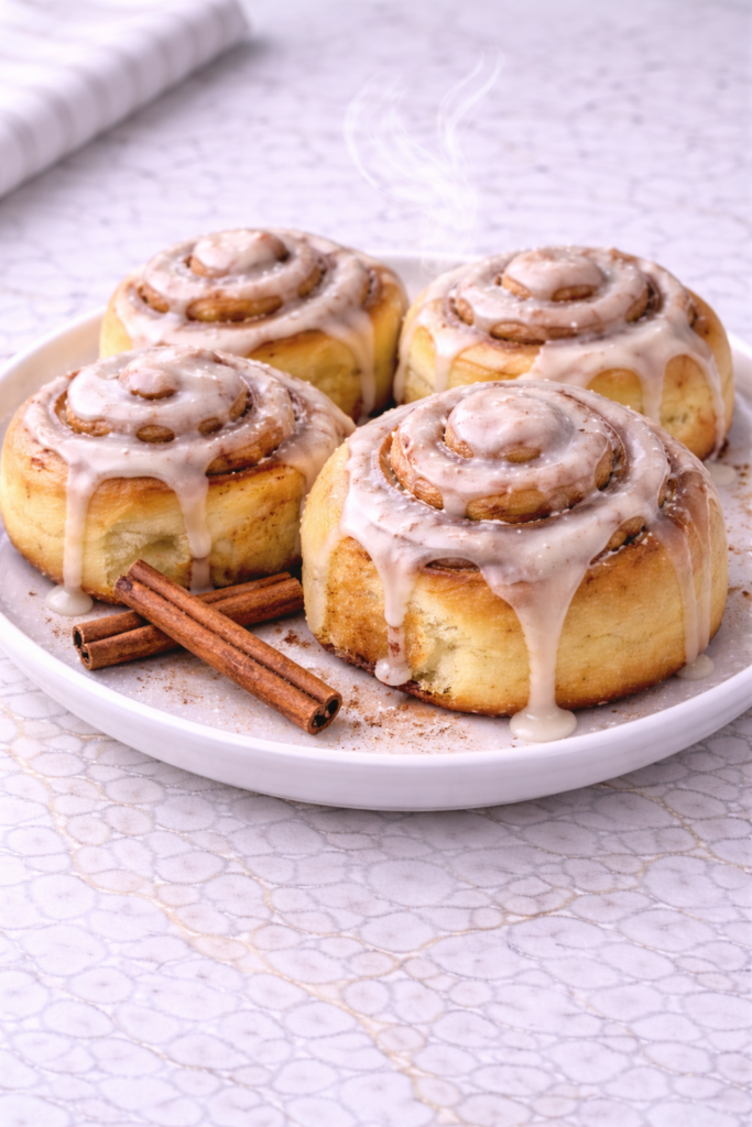 These cinnamon rolls are soft, fluffy, and filled with warm cinnamon flavor, even with a shorter rise time. The dough bakes up tender, and the rolls pull apart easily, just like traditional versions. Every bite feels familiar and comforting.