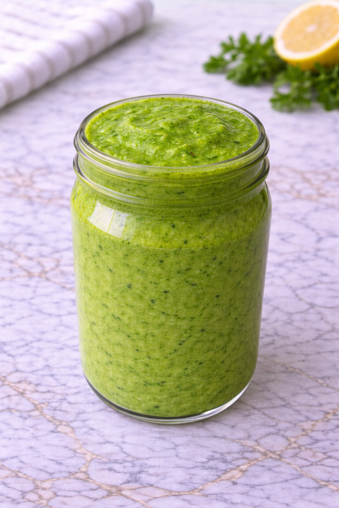 Blend slightly longer than expected to fully break down parsley. A smooth texture improves the experience.