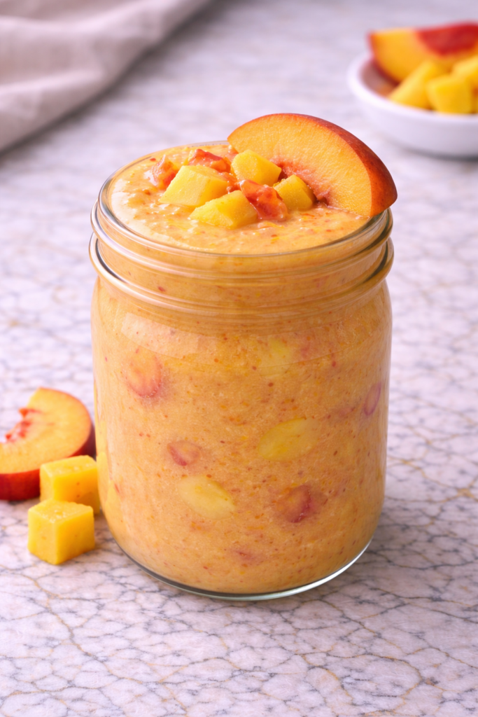 This smoothie hits different on a hot summer morning, and honestly, I think it’s because the combo of peaches and mangoes just makes sense together.