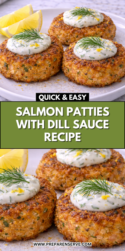 Salmon patties with dill sauce are best enjoyed fresh, when the patties are crisp on the outside and tender inside, and the sauce is cool and creamy. This contrast is what makes the dish feel so balanced and satisfying.