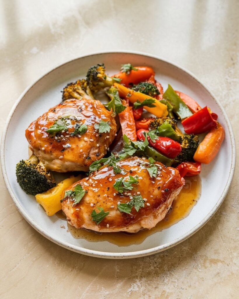 This dish is balanced with lean protein, fiber-rich vegetables, and healthy fats. The honey provides natural sweetness, garlic adds immune-boosting properties, and the colorful veggies bring antioxidants and vitamins. It’s a complete meal in one pan, offering nourishment without sacrificing flavor.