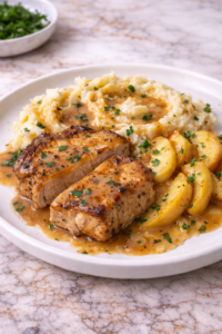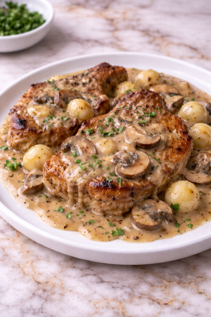 What makes this recipe special is the combination of perfectly seared pork chops and the flavorful gravy that smothers them. The pork stays tender and juicy, while the gravy adds depth, warmth, and a bit of nostalgia to the meal. Every bite feels comforting, filling, and deeply satisfying.