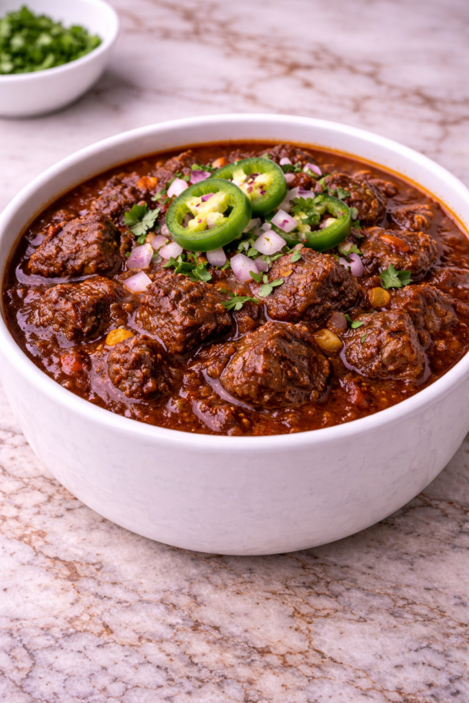 With tender beef, smoky chili peppers, and a bold, flavorful sauce, it’s hearty, comforting, and deeply satisfying.