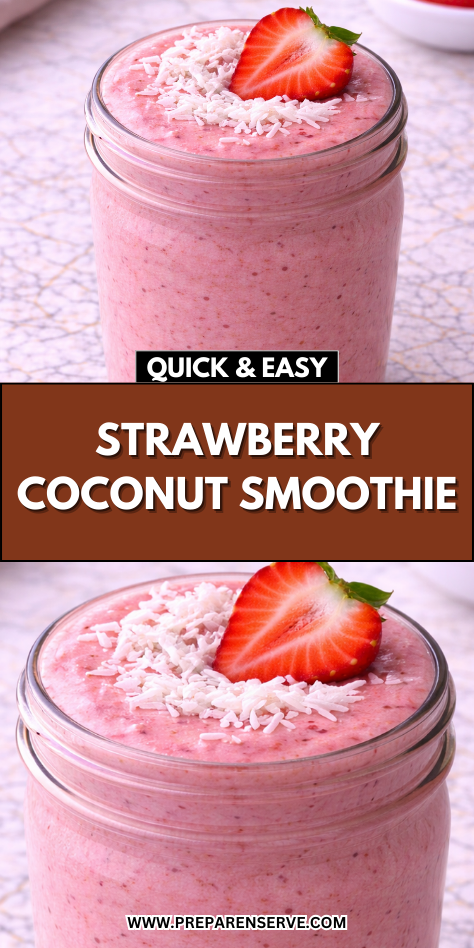 Pour your smoothie into a glass, and if you’re feeling a little fancy or just want to make it look Instagram-worthy, top it with some shredded coconut or a fresh strawberry. It’s totally optional, but sometimes making your food look nice is half the fun, plus it tricks your brain into thinking you put in way more effort than you actually did.