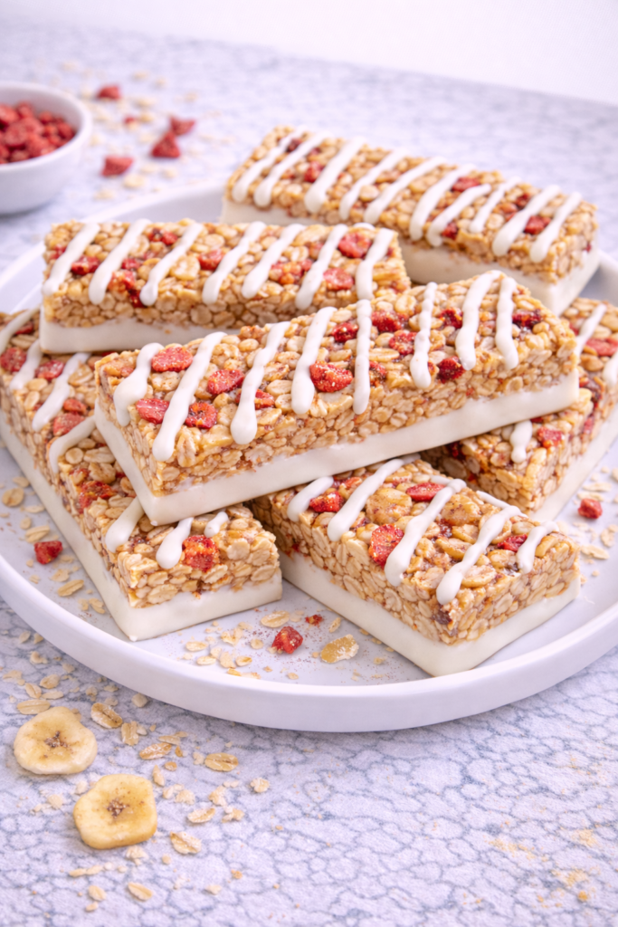 Each batch feels like a small moment of care made from simple ingredients. The balance of oats, yogurt, and strawberries creates a bar that feels fresh without being delicate.
