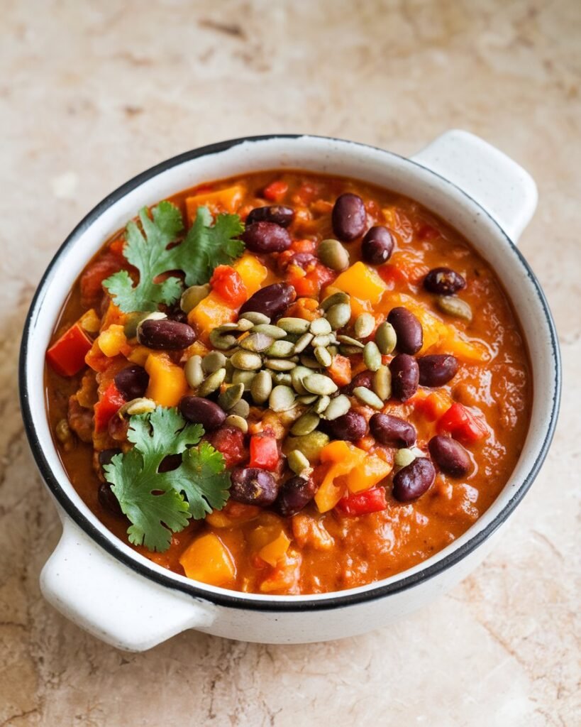 This Vegan Pumpkin Chili is a one-pot wonder that’s as nourishing as it is flavorful. It’s loaded with protein from beans, packed with fiber-rich vegetables, and infused with pumpkin for a velvety texture. The combination of chili powder, cumin, and smoked paprika creates a deep, satisfying flavor without the need for meat.
